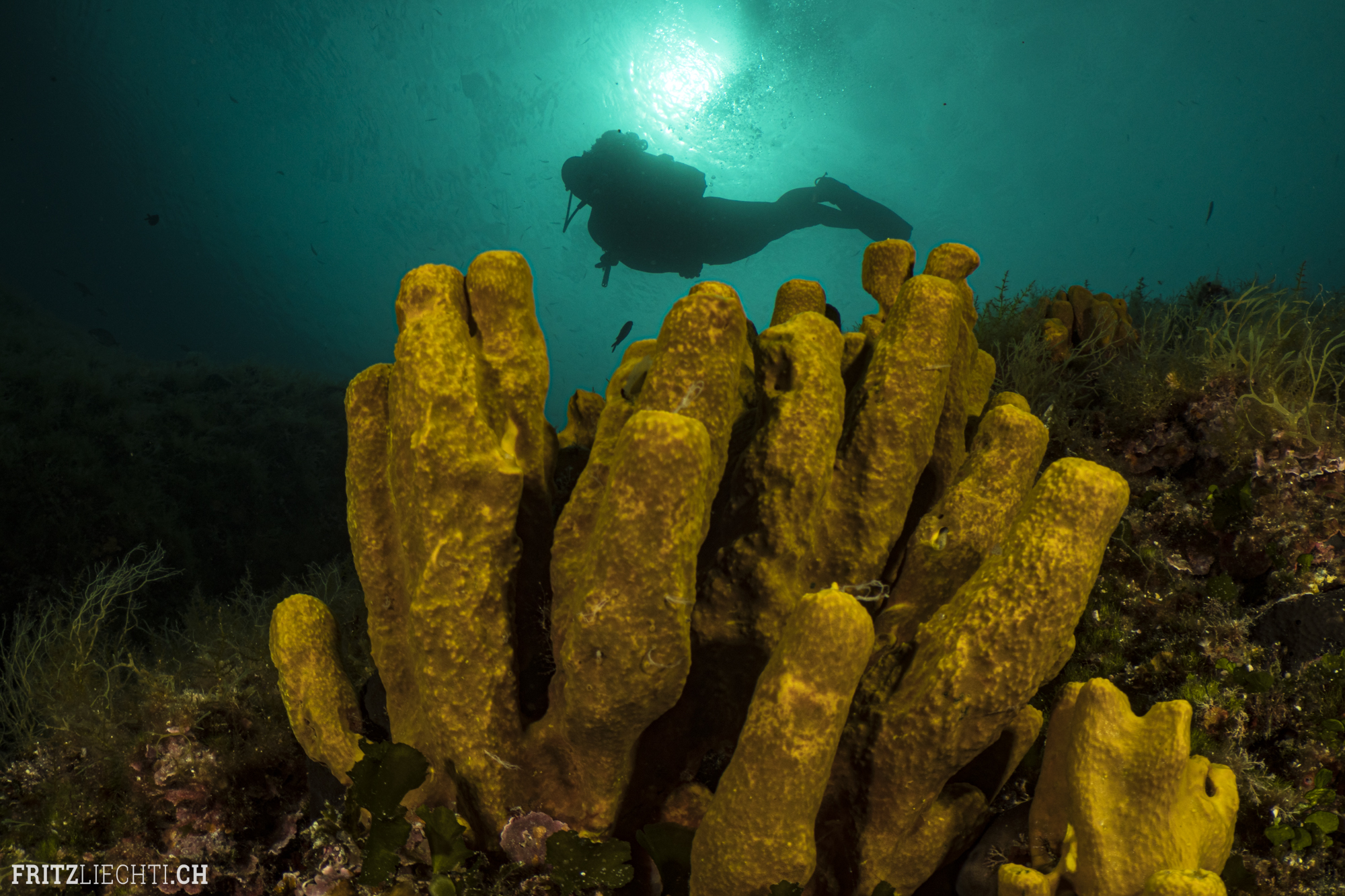 Trainingstag: Heute konnte ich mit meinem neuen Buddy und Model Antonio zum ersten Mal tauchen. Ich gab Ihm 2 Aufgaben: Schnecken suchen und immer den Rückweg zum Boot kennen. Nun - Antonio und Kompass passen nicht zusammen. Ich wäre wahrscheinlich bis nach Marokko geschwommen, wenn ich Antonio mit seinem Kompasskurs geglaubt hätte. Auftauchen - Kompass selber richten und zurück zum Boot. Von jetzt an überlasse ich die Peilung nicht mehr meinem einheimischen Kollegen. Das Fotografieren war gar nicht sooo schlecht.