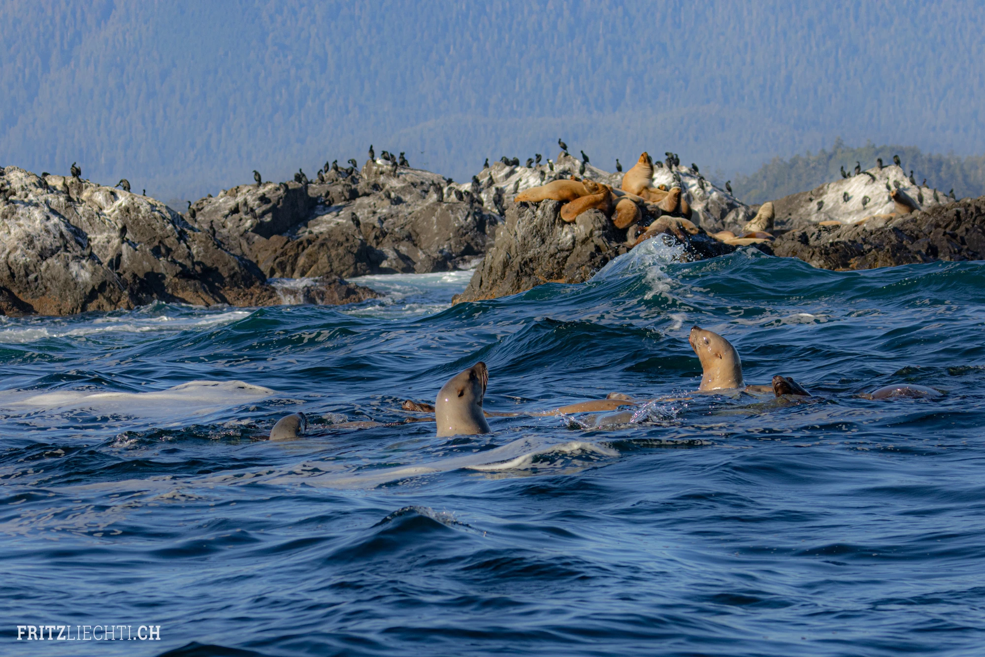 Trip to Vancouver Island. The search for bears was a sad adventure. For about 3 months there was no rain in BC. The rivers are mostly dry and the salmon cannot spawn. There will be much fewer salmon in the next few years. The bears are hungry. Nature is suffering. Afterwards I was diving for wolf eels and giant octopusses.